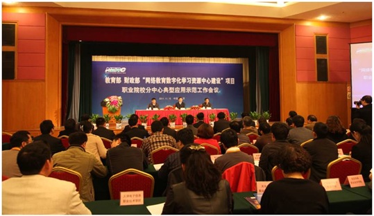 2011年11月15日至16日,教育部、财政部“网络教育数字化学习资源中心建设”项目职业院校分中心典型应用示范工作会议在北京召开。会议主要内容是正式启动职业院校分中心典型应用示范工作,为职业院校分中心授牌,部署应用示范工作任务,赠送分中心系统并进行系统安装和资源编目培训。项目总负责人、教育部职业教育与成人教育司司长葛道凯,项目领导小组副组长、中央广播电视大学副校长严冰、李林曙,来自24家中职学校分中心、38家高职院校分中心的校领导、分中心负责人、资源管理人员、技术人员,项目办公室负责人、项目子课题负责人和部分项目协作单位的同志共200余人出席了会议。会议由严冰主持。