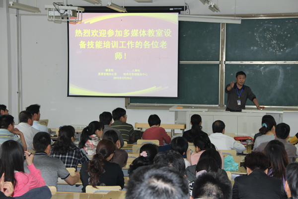 为了配合老师更好的使用多媒体教学设备完成授课任务,提升教师自我解决多媒体故障的能力,规范多媒体教室使用流程,确保多媒体教学的正常运行,提高多媒体教室的工作效率,2013年5月29日-31日信息化管理服务中心联合教务处、人事处、质量管理办公室共同举行多媒体教室设备使用技能培训工作。通过开班动员、制度学习、技能培训、资格考试四个环节,分三批共培养全院教师480人,合格441人。